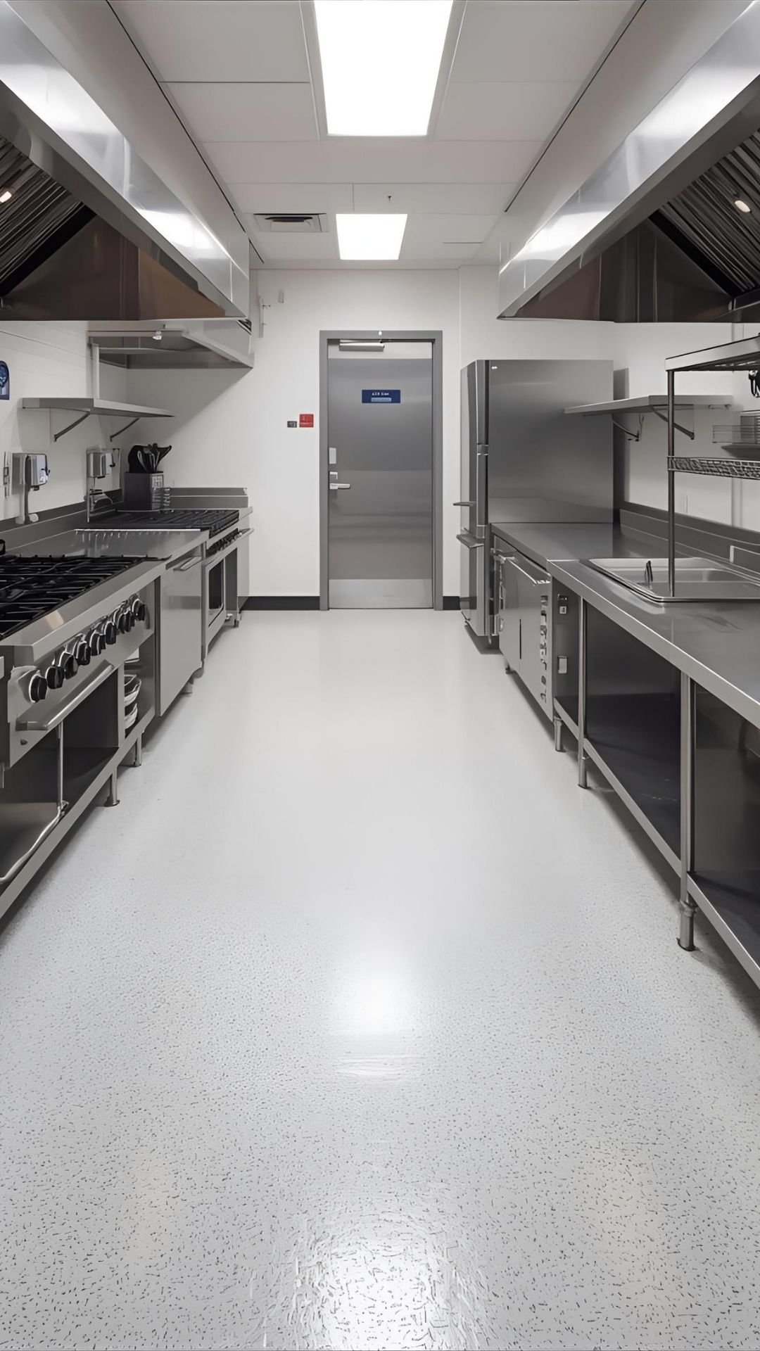 Concerned about food safety and hygiene compliance in your kitchen? We install food-grade epoxy flooring that meets UAE health standards with antimicrobial protection for restaurants, commercial kitchens, food processing plants, and cold storage facilities with seamless, easy-to-sanitize surfaces.