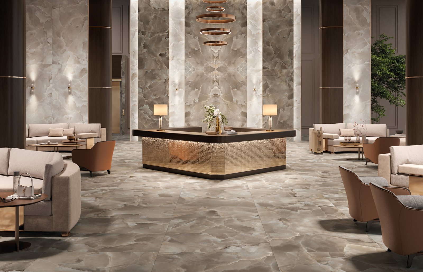 Professional installation in kitchens, pantries, and other high-traffic spaces, combining luxury with easy maintenance.